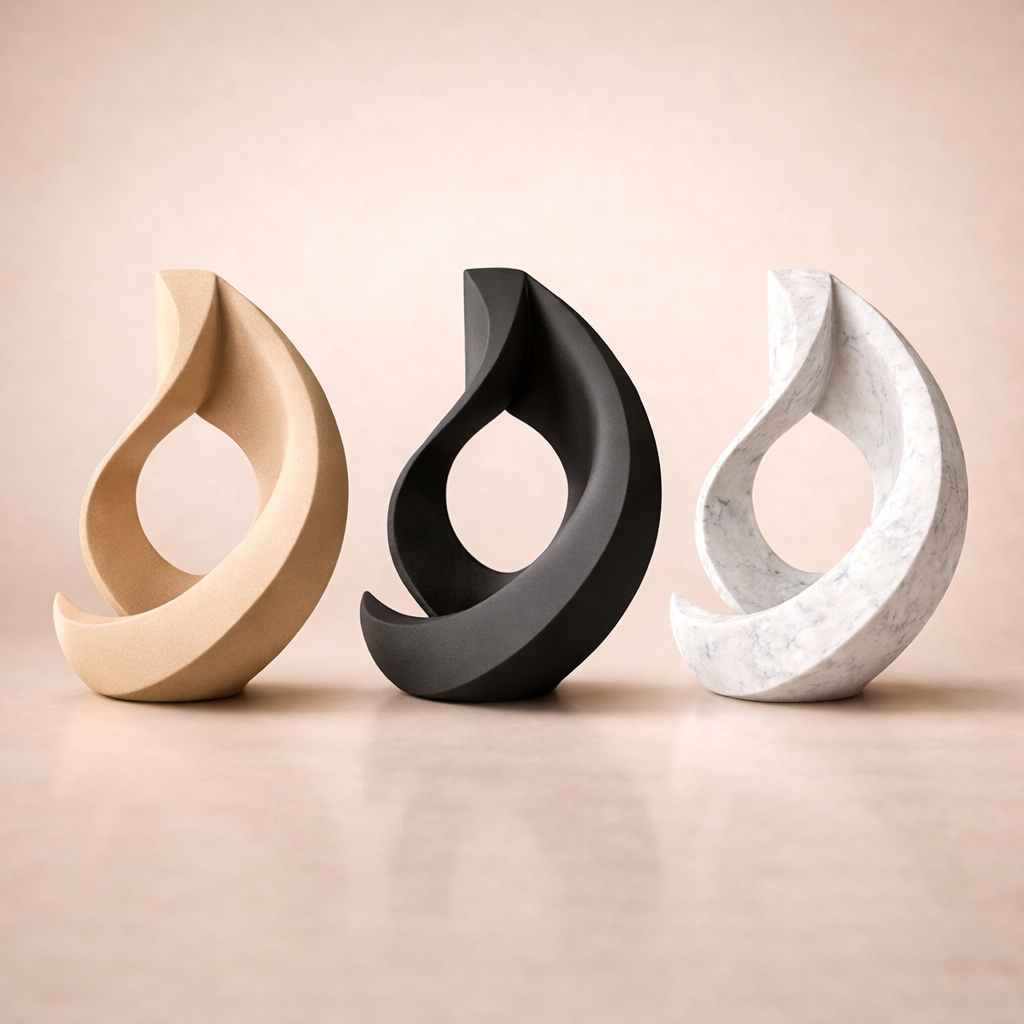 tekočo obliko in toplim nevtralnim odtenkom v prostor vnaša občutek miru,
